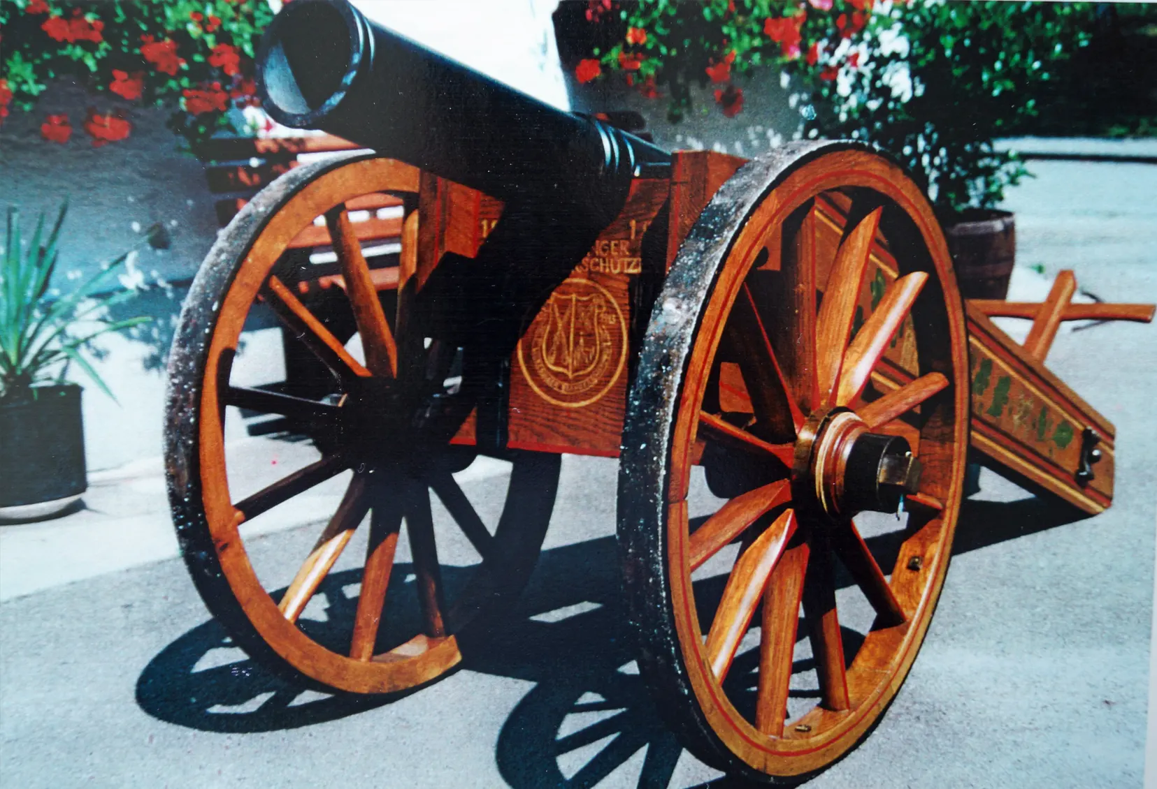 Ein eigener “Kanonen-Ausschuss” wurde gebildet, bestehend aus 5 Personen. Der Ausschussvorsitzende war Helmut Unterberger. Dazu kam als Fachmann und Berater der Büchsenmacher Josef Reichl aus Berndorf, der die Kanone dann auch baute. Schließlich brauchte man noch eine Lafette, ein Fahrwerk. Nach längerer Suche wurde Wagnermeister Herbert Junger gefunden, der den Plan umsetzte und den fahrbaren Untersatz erbaute. Alle Erwartungen wurden erfüllt und die ersten Probeschüsse konnten abgegeben werden. Schließlich übernahm unser leider schon verstorbener Schützenkamerad und Malermeister Hans Gasteiner die malerische Gestaltung der Lafette.