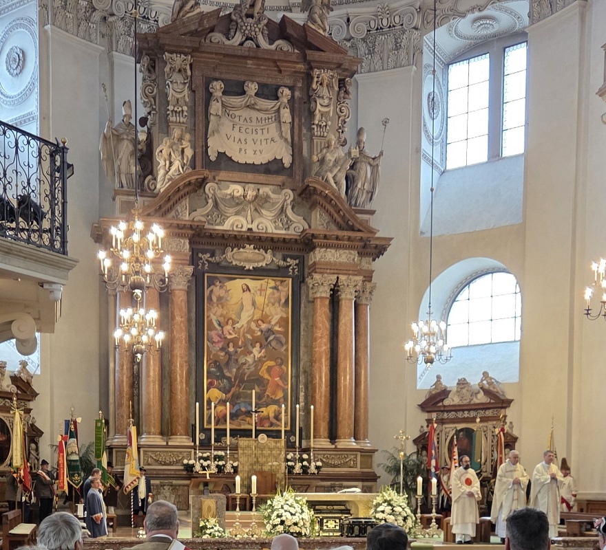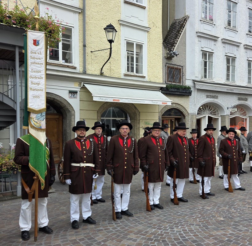 Martinifeier der Bürgergarde 2025: Christoph Schobesberger unterstützte als Diakon bei der Messe für den heiligen Martin im Dom. Die Lieferinger Prangerschützen traten am Kapitelplatz an, um einen Ehrensalut mit Gewehr und Kanone abzufeuern.